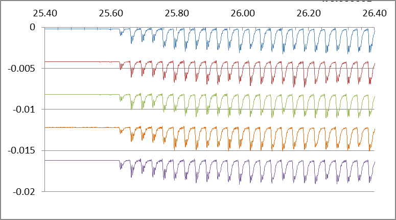 La détection par émission UV des paquets d’alphas du cyclotron Arronax. Chaque paquet au sein des trames de faisceaux est espacé de 33ns soit 30.45MHz, fréquence fondamentale du cyclotron :