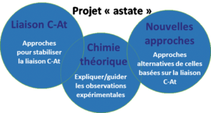L’astate 211 est un des candidats prometteurs pour des futurs traitements en thérapie alpha ciblée (TAC). Une double approche expérimentale /théorique a été développée en collaboration avec le laboratoire CEISAM afin d’explorer la chimie de cet élément méconnu. Son diagramme de Pourbaix a été revisité et la réactivité des espèces At(-I), At(I) et At(III) étudiée. C’est un curieux élément puisqu’il présente des propriétés propres aux halogènes, alors que son comportement dans certains milieux le rapproche des métaux. Les outils / méthodologies / compétences développées sont utilisées pour envisager des approches de radiomarquage innovantes en collaboration avec le CRCINA.