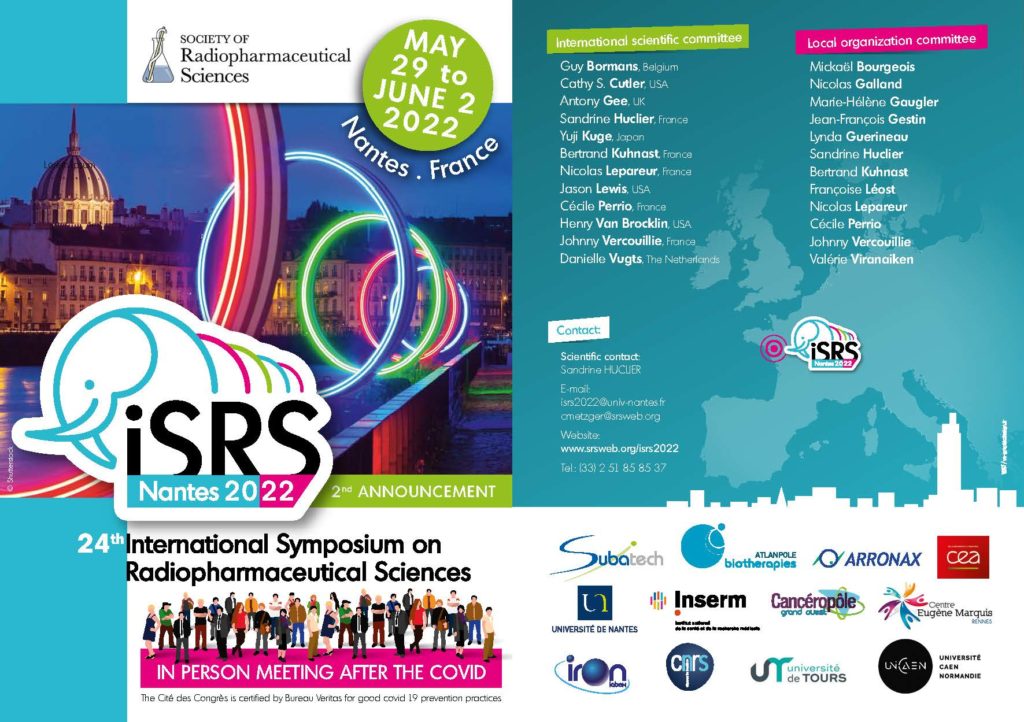 The 24th international Symposium on Radiopharceutical Sciences (iSRS) will take place in Nantes from 2022, May 29 to June 2.