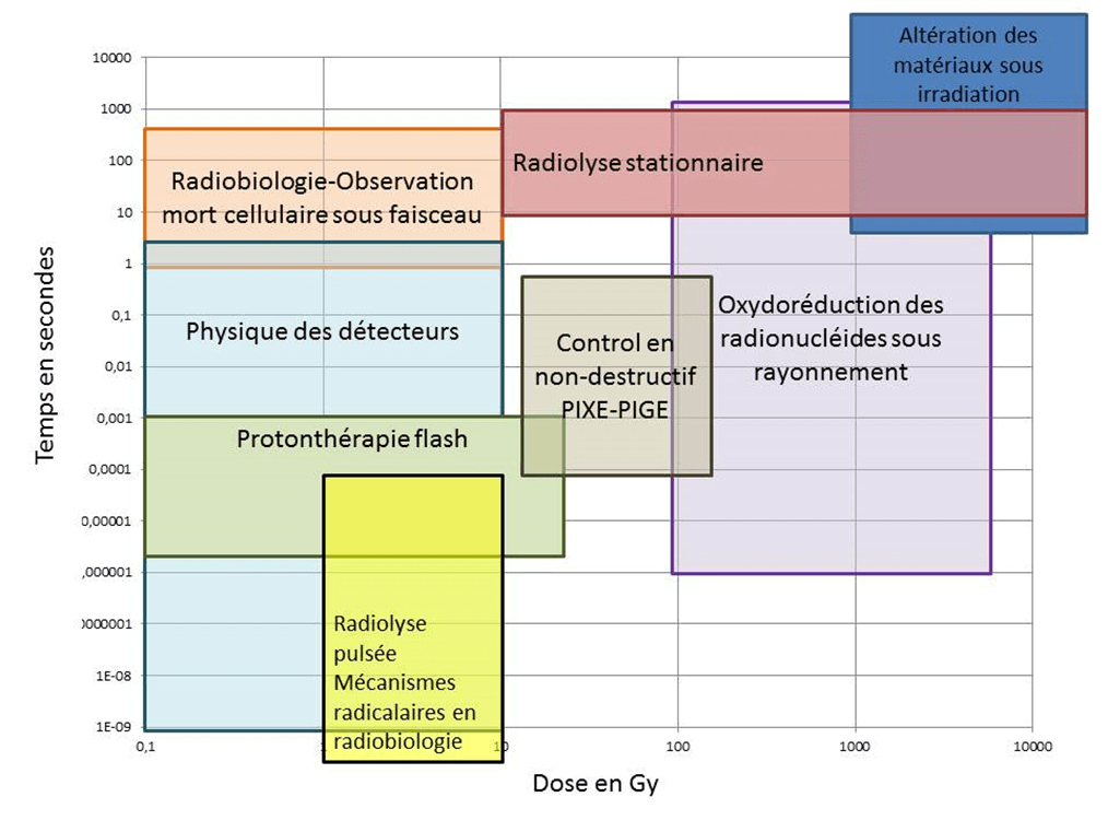 Tous les phénomènes qui découlent de l’interaction d’un rayonnement avec la matière, inerte ou vivante, sont fortement dépendants de la dose reçue : de sa valeur, mais aussi de la façon dont celle-ci est déposée, dans l’espace et dans le temps, qu’il s’agisse d’irradier une cellule pour comprendre son comportement, de déterminer un rendement radiolytique, de mettre au point de nouveaux détecteurs ou d’étudier l’altération de matériaux.