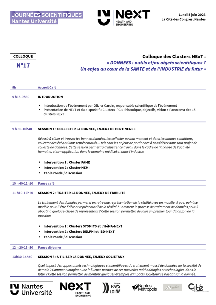 Agenda : colloque des clusters NExT le 5 juin 2023