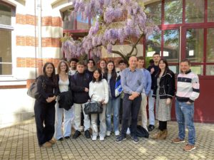 Vingt élèves de terminale spécialité physique-chimie du lycée Guist’hau à Nantes se sont portés volontaires pour participer tout au long de l’année à un atelier scientifique imaginé et animé par leur enseignant Daniel Balavoine avec la complicité de Guillaume Blain, ingénieur au laboratoire Subatech et qui mène ses travaux expérimentaux au GIP ARRONAX. L’atelier avait pour thème les applications de la radioactivité pour la santé. L’intervention du scientifique au lycée a permis aux élèves de bénéficier d’apports théoriques sur la dosimétrie, la chimie induite par les rayonnements ou encore les nouvelles approches de radiothérapie externe pour lutter contre les cancers. Ils ont ensuite effectué des expériences de dosage en utilisant les méthodes de laboratoire. Manon Evin, doctorante en 2ème année au laboratoire Subatech et qui se destine au métier de physicienne médicale, est également allée à leur rencontre pour présenter son parcours et inviter les lycéens à analyser des films radiochromiques soumis à des irradiations. Mi-mars, les élèves ont été accueillis pendant un après-midi au laboratoire Subatech sur le campus de l’IMT Atlantique à Nantes. Ils ont visité plusieurs salles expérimentales et découvert une série de matériels scientifiques spécifiques et des dispositifs de radioprotection.