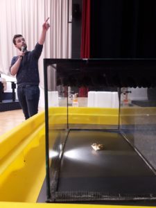 A des élèves de 2de du lycée Bellevue au Mans, ils ont parlé de médecine nucléaire contre le cancer, de radiothérapie interne vectorisée, d’astate et de rayonnements alpha. Ils ont su trouver les mots et le ton justes pour parler de leurs parcours, expliquer leurs sujets de thèse, présenter leurs activités quotidiennes au laboratoire et répondre à toutes les questions des lycéennes et des lycéens.